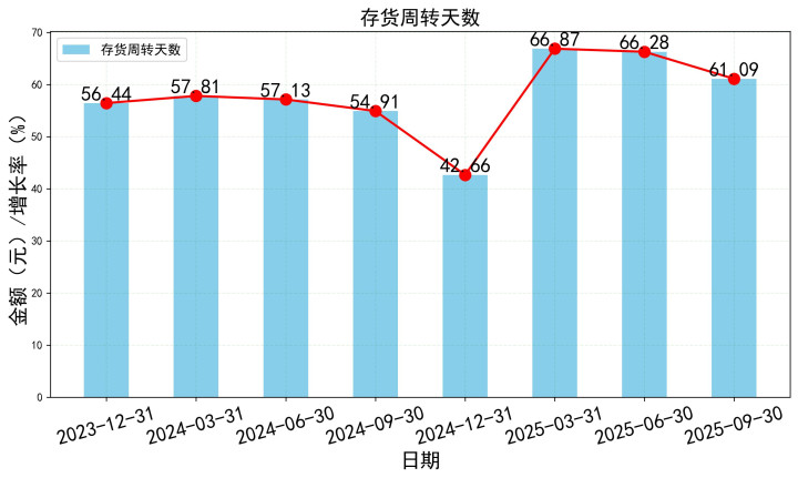 这个循环的关键节点在于运营效率。存货周转天数为61天,与去年同期54.91天,增加6天。