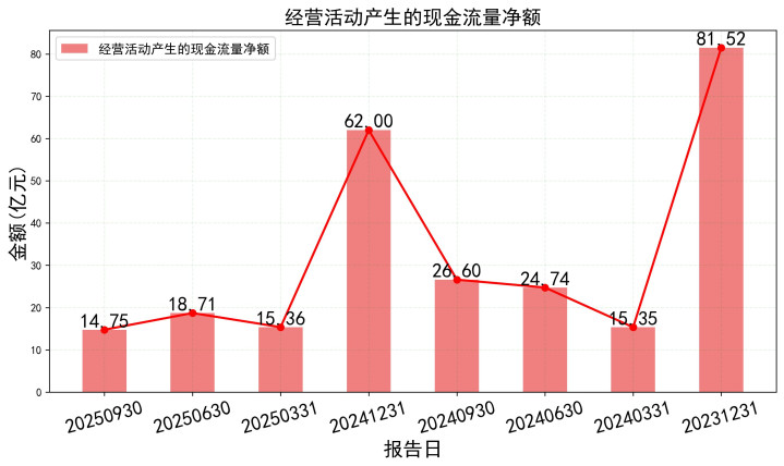 今年前三季度,公司经营活动现金流净额为14.75亿元,而净利润为25.87亿元。