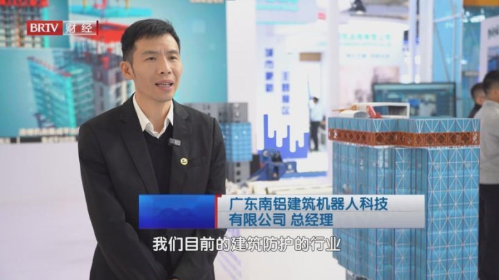 此次展出的核心突破在于材料体系的迭代升级,彻底改变了建筑防护领域依赖钢材的传统模式。广东南铝建筑机器人科技有限公司总经理黄敏豪介绍:“我们目前的建筑防护行业全部是使用钢材料去生产制造,还有防护搭建的,我们使用了铝合金材料代替钢材料,重新设计了新的产品。用铝材料它有几个优势,第一,铝极度的轻量化。轻量化之后,它比钢的重量是要减轻约1/3。第二,铝一体化成型强度高。它的强度比钢材料要增长90%。第三,铝它表面不生锈,耐腐蚀,特别适合在高温或者高湿的极端环境长期稳定的使用。同时它绿色环保,可以循环使用。”