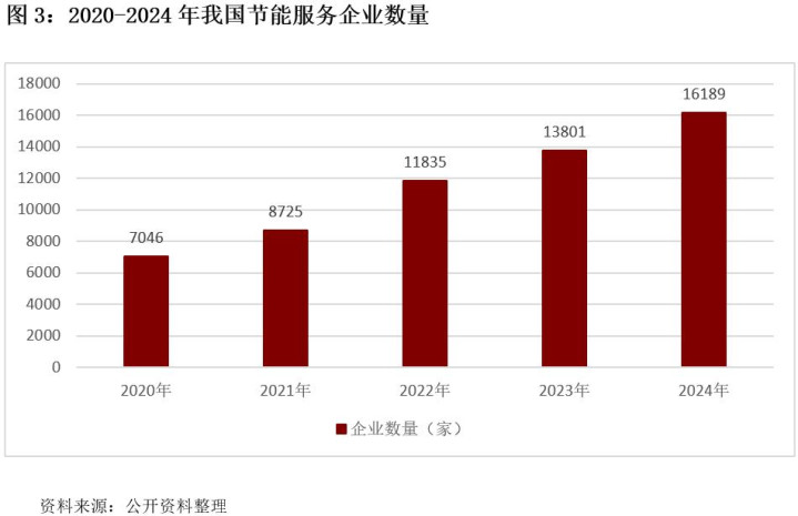 近年来我国节能服务行业总体稳中有进,企业数量持续快速增加、从业队伍不断壮大。截至2023年底,全国节能服务公司数量达13801家,节能服务产业从业人员数量达96.3万人。2024年国内在册节能服务公司总数达16189家;从业人员数量突破百万。2016-2024年期间,行业从业人数持续保持正增长趋势。
