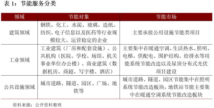 按照节能三大领域分类,节能服务行业可分为建筑领域、工业领域和公共设施领域。