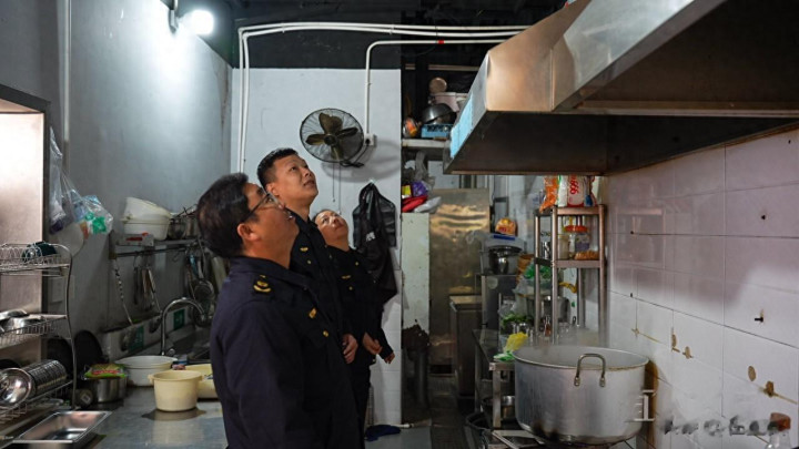 高武率队检查餐饮商铺油烟整治