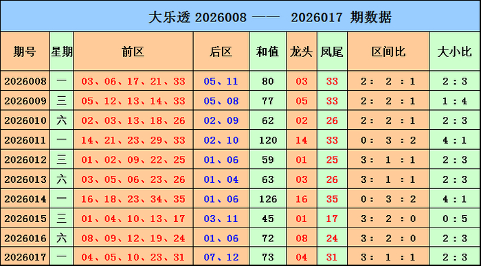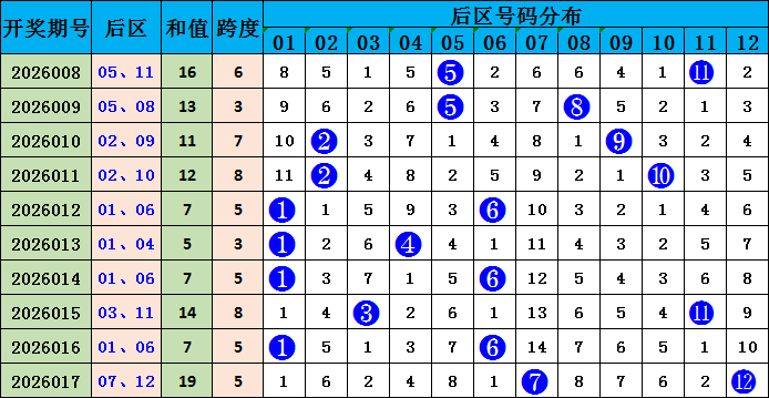 后区分析:大乐透后区上期开出奇偶组合,跨度5。近10期后区奇偶组合出现6期,偶奇组合出现1期,奇奇组合出现2期,偶偶组合出现1期;近10期后区两码跨度1-5开出6次,6-11开出4次,本期后区两码综合推荐:02、10。