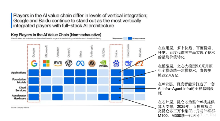 在人工智能领域,开云官方体育app百度是全球为数不多在AI四层技术栈(芯片层、AI云层、模型层、应用层)都有全面布局的企业。